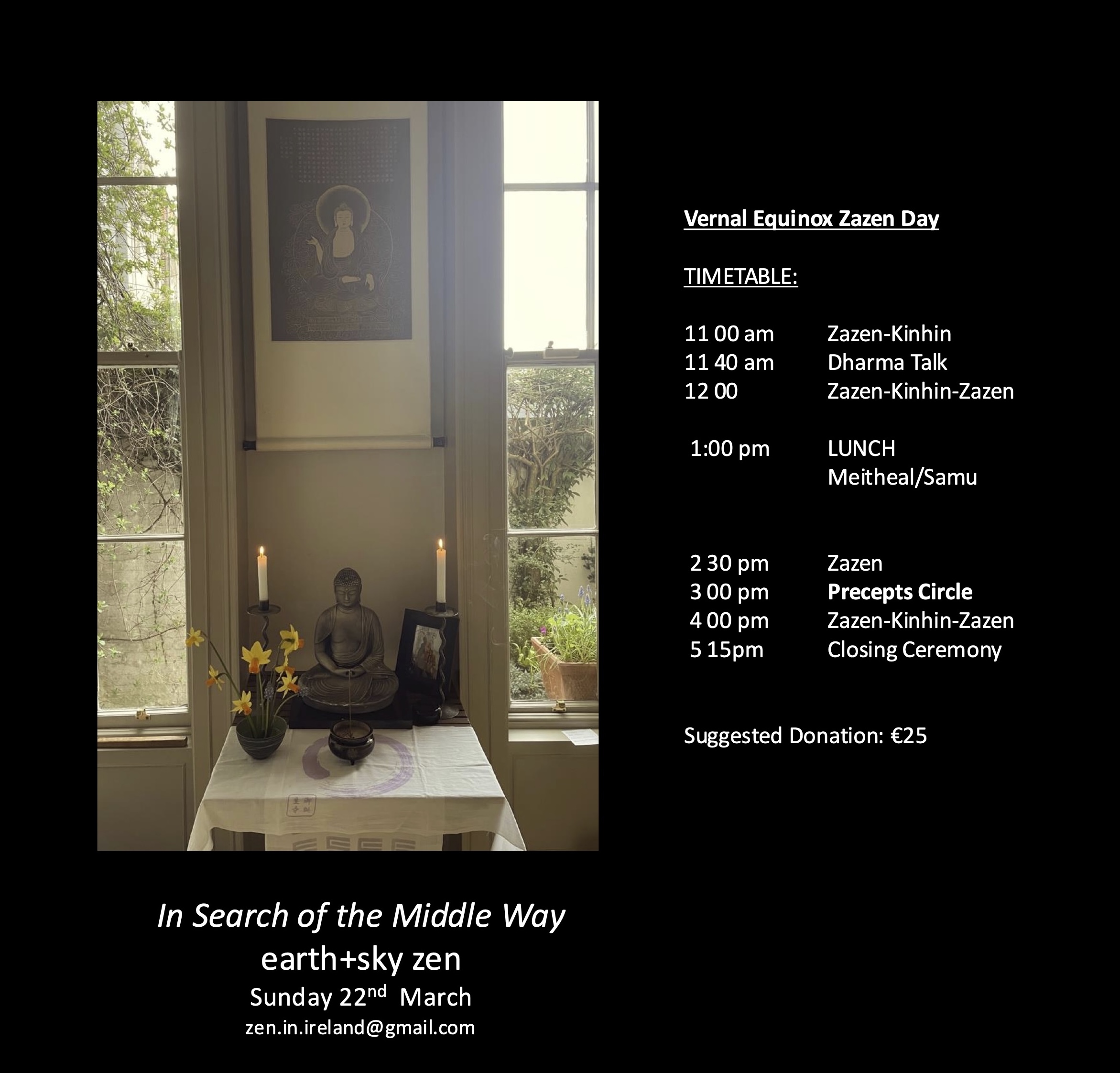 Join us on the Vernal Equinox, Sunday March 22nd for a Zazen Day, when we will bring equilibrium and balance to the body-mind. 11am - 5:30pm. Poster and timetable here.