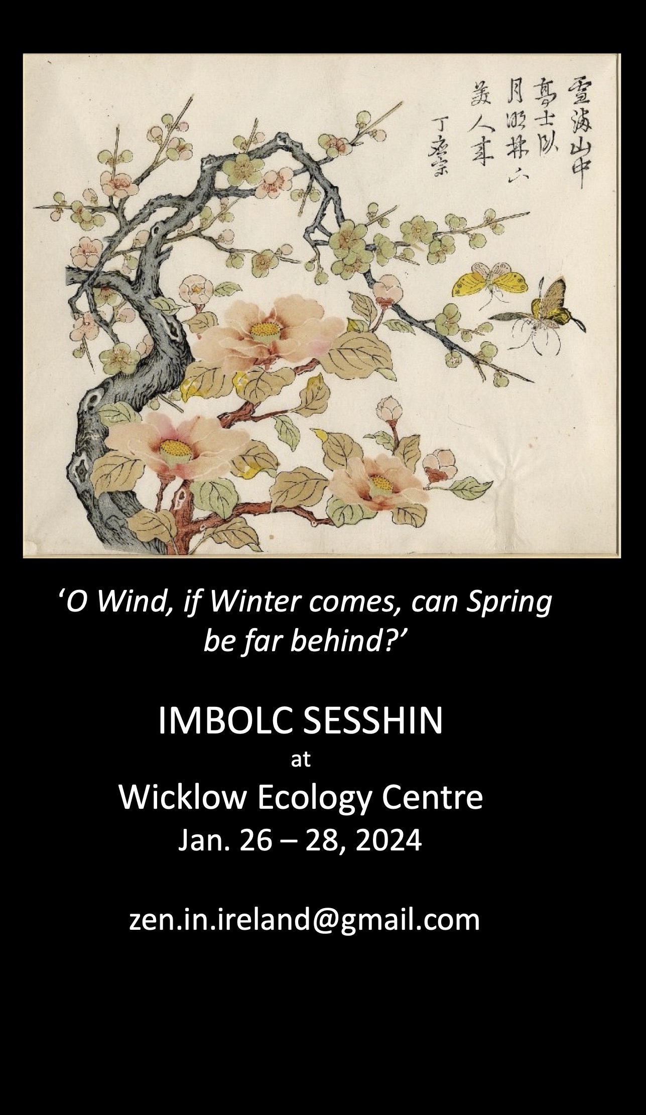 Earth+Sky Zen will host the Imbolc Sesshin from January 26th to 28th, 2024, at An Tairseach, Wicklow Ecology Centre.